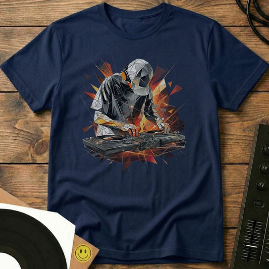Showcasing a stunning geometric design of a DJ in action, this shirt celebrates the art of mixing and the vibrant energy of electronic music.